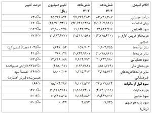 با این حال، افزایش هزینههای انرژی (برق و گاز) و تسهیالت مالی، چالشهایی ایجاد کرده است. در ادامه، تحلیل کلیدی بخشها را به صورت خالصه و با استفاده از جداول ارائه میکنم. تمام مبالغ به میلیون ریال است و مقایسه با دوره مشابه سال قبل (۱۴۰۳) انجام شده.