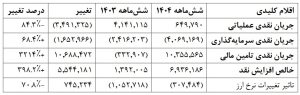 oکاهش نقد عملیاتی به دلیل افزایش موجودیها (۱۹تریلیون ریال) و دریافتنی ها (۱۳تریلیون ریال)